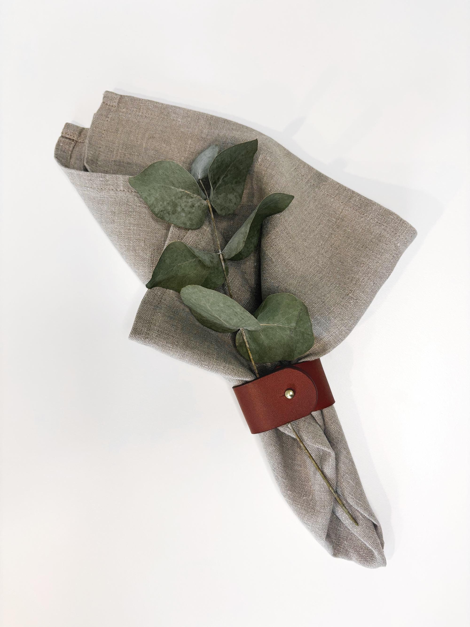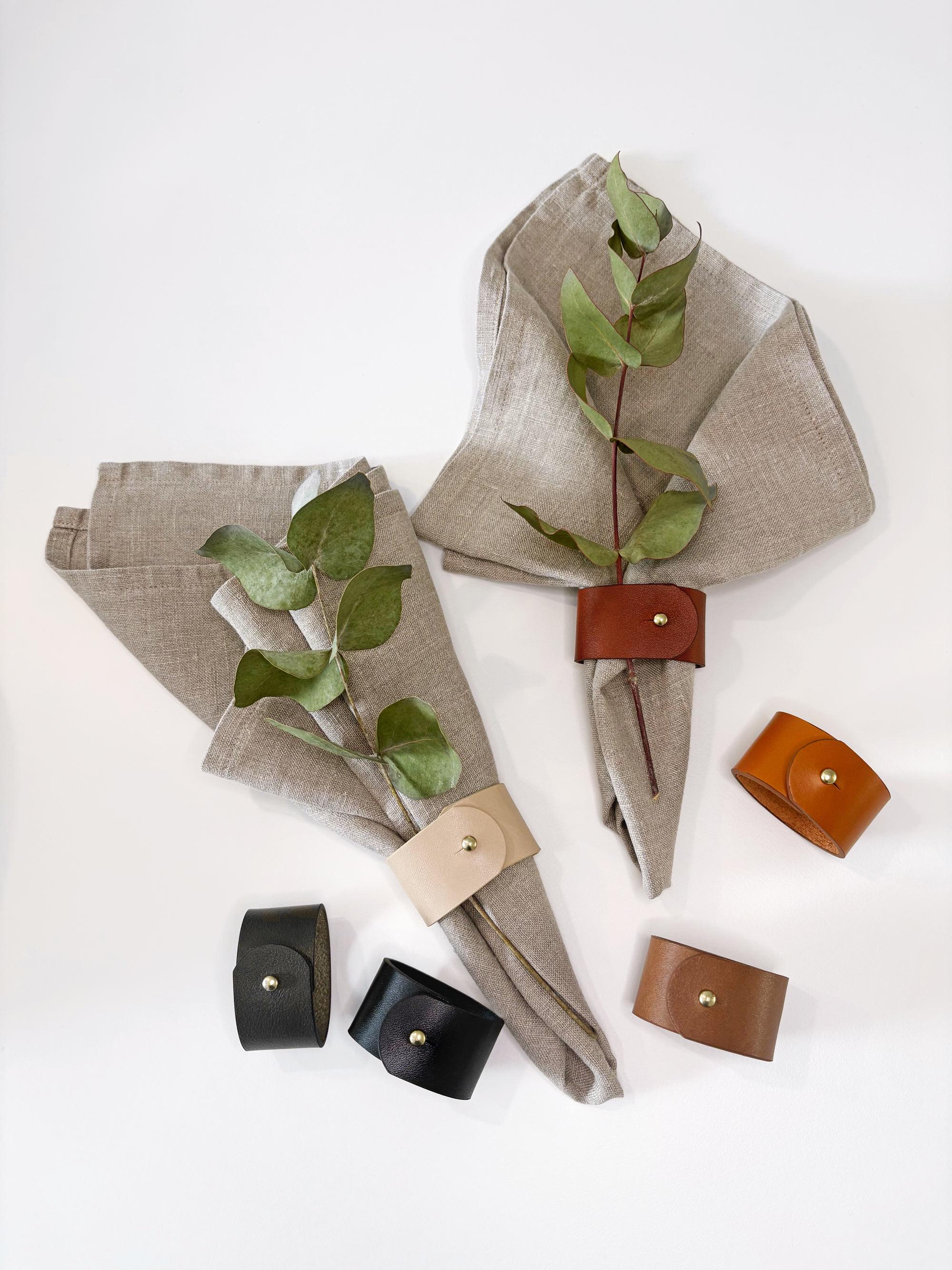 These classic napkin rings made of genuine cowhide leather are an elegant accessory for a beautifully set table. Custom color combinations are possible; simply specify your desired color and quantity at checkout.